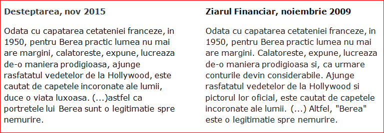 Sub titlul „Un oraș din SUA poartă numele unui pictor băcăuan”, Deșteptarea publică pe 6 noiembrie 2015 o cronică de la un eveniment din Bacău. Ceva foarte asemănător s-a publicat în urmă cu șase ani, pe 3 noiembrie 2009, în Ziarul Financiar. Nu bag mâna în foc că de acolo e originalul, cine știe de unde-or fi copiat și ăia.