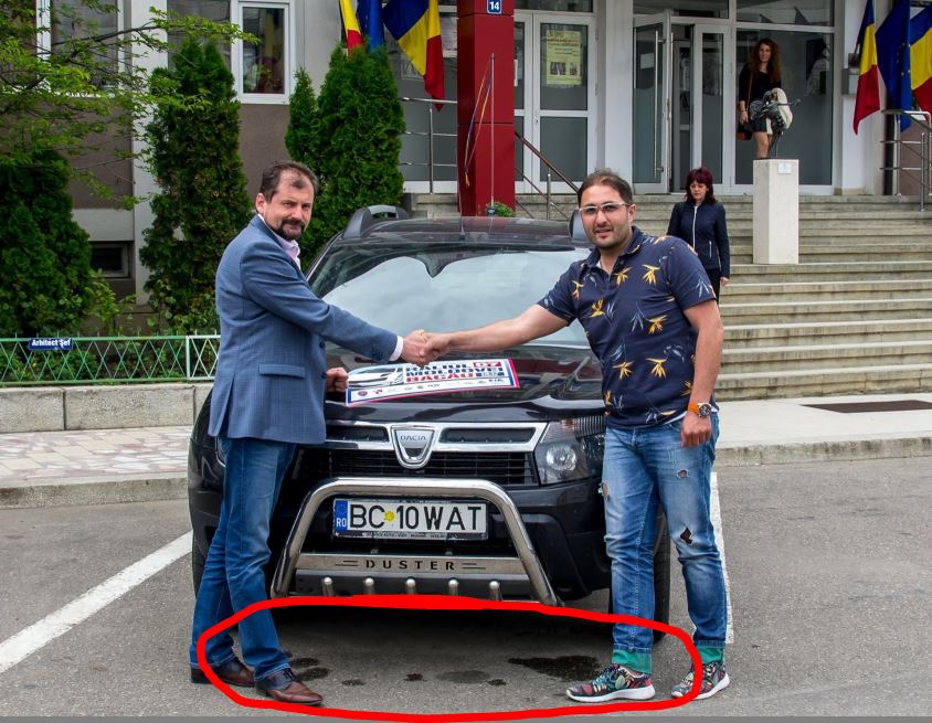 Este si in fata la Casa de cultura un ciur de masina care are scapari si au pus o gamela de plastic sub ea.