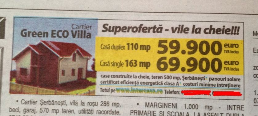 Am cumparat-o in perioada de boom, am platit o mica avere(credit desigur) insa dezamagirile urmau sa apara una dupa alta la scurt timp dupa achizitie. Desi li s-a facut reclama ca sunt extrem de eficiente energetic ( clasa A) facturile la energie pe timpul iernii au fost innebunitor de mari, unii dintre vecini suplimentand izolatia casei dupa prima iarna.